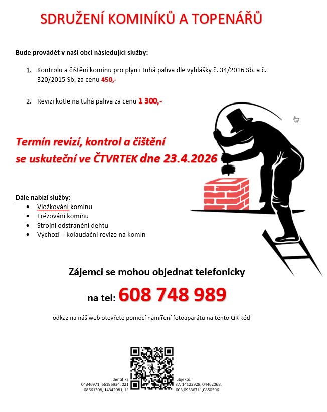 Sdružení kominíků a topenářů přijede do naší obce 23.4.