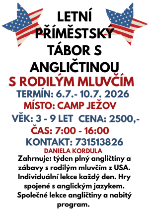 Letní příměstský tábor s angličtinou pod vedením rodilého mluvčího Camp Ježov více informací v přiloženém letáčku