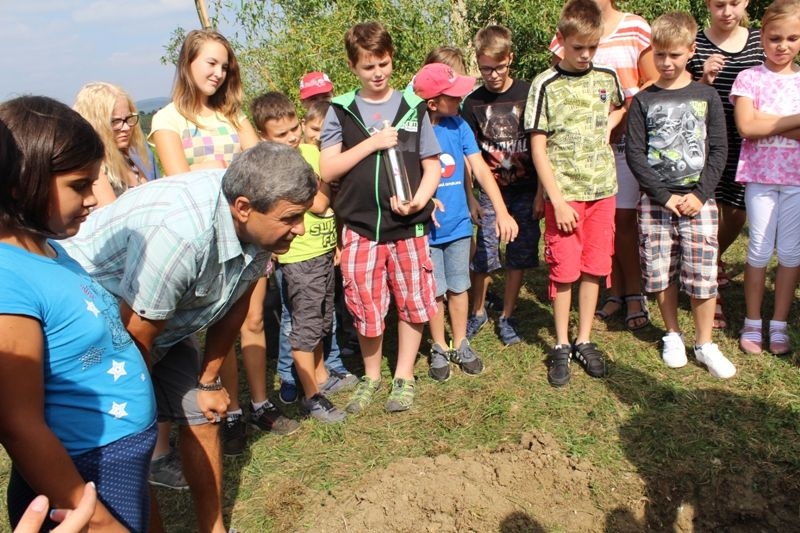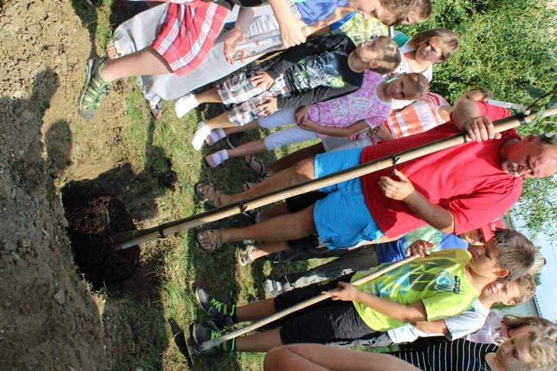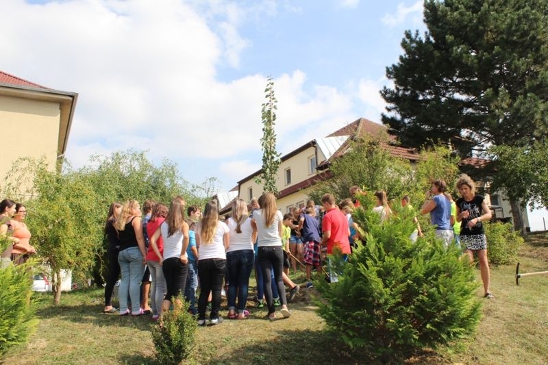 Vysazování stromů v areálu ZŠ 16.9.2016 v rámci projektu "Stromy s pamětí".