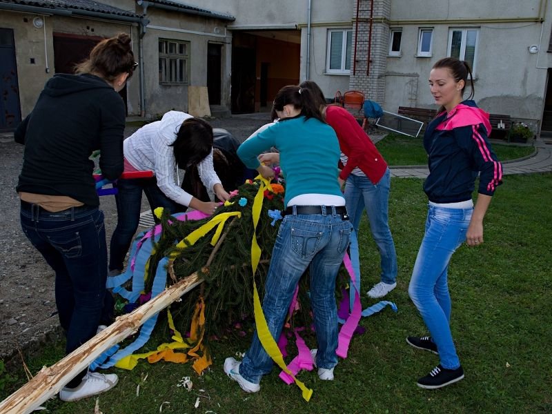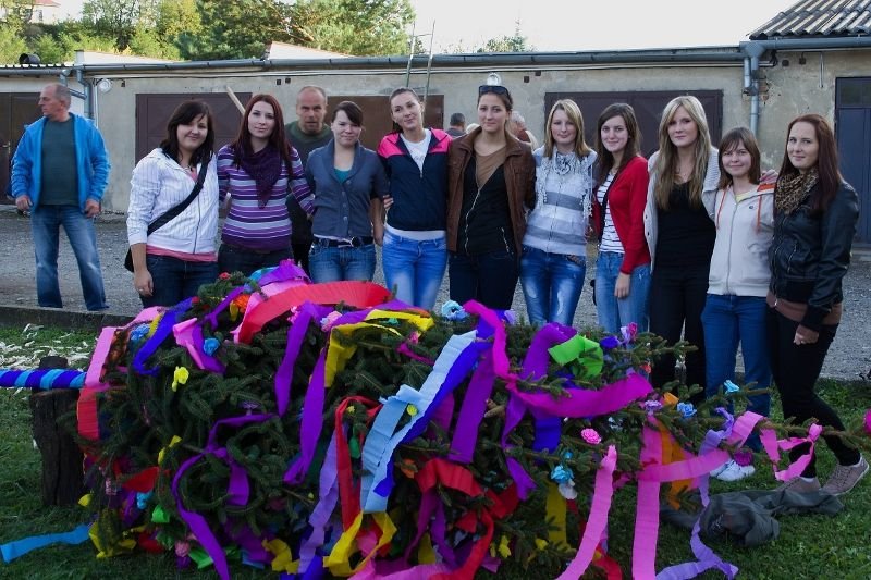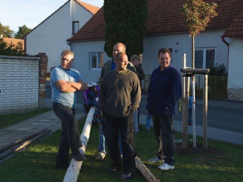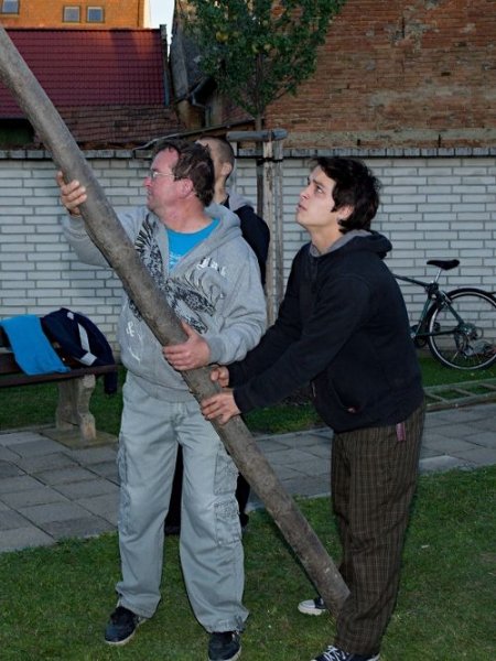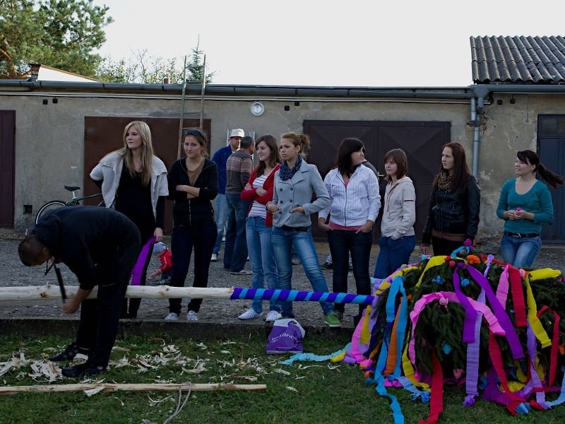 Stavění májky před ježovskými hody.
